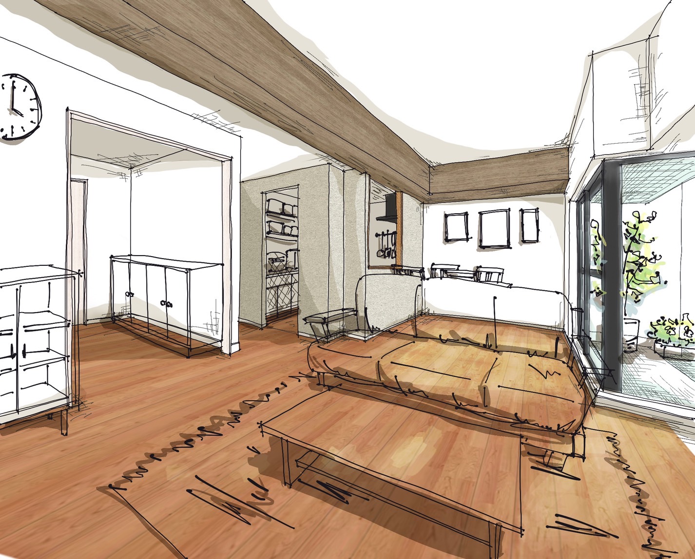フローリングは突板で、時間の経過とともに味が出てくる素材を採用しました。